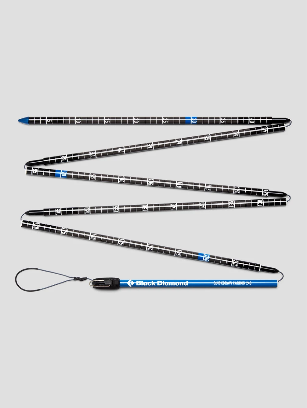 Die QuickDraw Carbon Probe 240 ist Black Diamonds leichteste Lawinensonde und mit ihren knapp 227 g Gewicht in deinem Rucksack kaum spürbar. Sie besitzt dennoch alle Funktionen, die die benutzerfreundlichen Sonden von Black Diamond besonders auszeichnen. Neben der CordLock-Technologie ist die Carbon Probe 240 mit einem Wiregate-Verriegelungsmechanismus ausgestattet, der die Sonde auch ohne Packsack zum Verstauen im Rucksack sichert. Auf diese Weise ist die Sonde mit der überarbeiteten Kevlar-Schnur mit nur einem Handgriff einsatzbereit und spart Gewicht. Die Spitze der Sonde besitzt einen etwas größeren Durchmesser als der Schaft, um die Reibung des Schafts am Schnee für mehr Präzision beim Sondieren zu reduzieren.