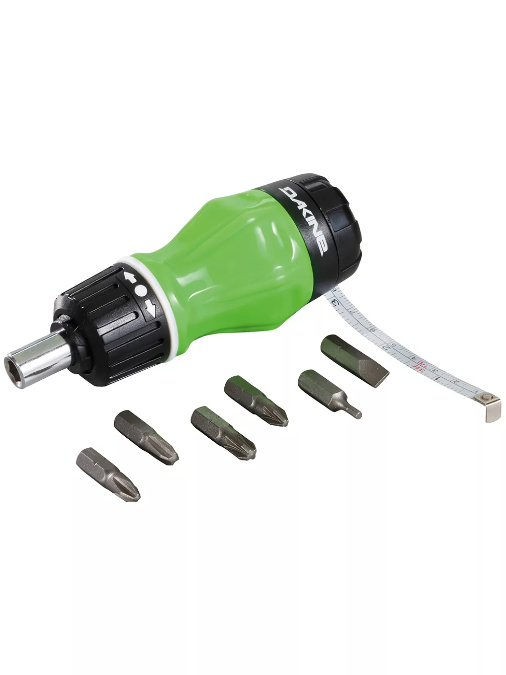 Der Stance Driver ist Dakines meist verwendetes Werkzeug. Es kommt mit allen Standard-Bits, die du für deine Skier, Snowboard oder Surfbrett benötigst. Der bidirektionale verstellbare Ratschenkopf macht schnelle Arbeit. Das einziehbare Maßband ist schnell zur Stelle wenn es darum geht die perfekte Breite auf deiner Bindungen einzustellen.