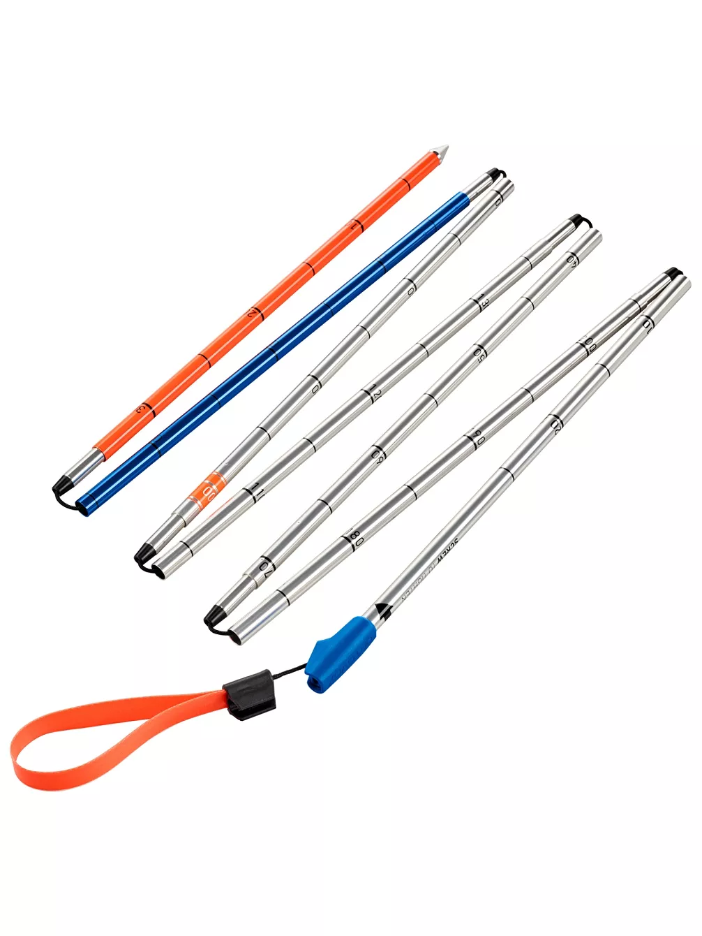 Die Alu 240 Light ist mit nur 235 Gramm unglaublich leicht und dank der Schnellspannschlaufe und dem Quick-Lock-Spannsystem in Sekundenschnelle einsatzbereit. An der optimierten Stellschraube kann die Spannung einfach und schnell nachjustiert werden. Ein besseres Eindringen verspricht die voluminöse Sondenspitze, die einen deutlich größeren Durchmesser als die Sondenelemente hat. Zudem haben Ortovox die Sondensegmente optimiert, die nun ein kompakteres Packmaß aufweisen. So passt die Alu 240 Light problemlos in deinen Tourenrucksack. Wie alle Ortovox Sonden verfügt die Alu 240 LIGHT mit über eine gut lesbare Tiefenmarkierung, eine deutliche 1 m – Markierung und das in neonorange gehaltene unterste Segment, um die Schaufelstrategie optimal anpassen zu können.