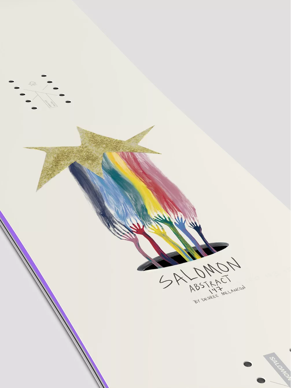 Das Salomon Abstract kommt mit Grafiken von Pro Desiree Melancon, die für Einheit und zwischenmenschliche Beziehungen stehen. Es ist ein Unisex-Snowboard und konzentriert sich auf Freestyle in seiner reinsten Form.